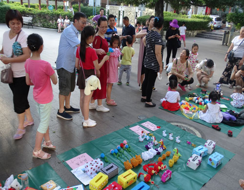 本次活动的摊位内容丰富,涵盖了玩偶、课外书、玩具、文具用品、手工艺品、绿植、碟片、首饰、服装、鞋等物品,各类商品琳琅满目,供各位社区居民观看购买。本次摊位中有一个特殊的义卖摊位,是社区妇女用时18个小时,自己制作出的串珠纸巾盒,所得款项捐助给大铲社区爱心基金会。另一个特色是每个摊位都是由“小老板”来负责,各施展本领,锻炼了参与小朋友的能力,并在母亲节之际,小朋友们分别送给妈妈玫瑰花,展现了浓浓的母子情,希望小朋友们在社区中健康快乐的成长。