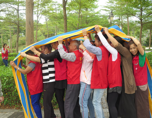 活动伊始,社区志愿者先进行团队热身游戏,拉近彼此距离。紧接着分组进行“珠行万里”的PK,这个游戏让队员们感受团队间有效的配合,衔接以及自我控制能力,为共同的目的及团队的责任感做好每一个环节。而“齐眉棍”游戏,看似简单但操作并不简单的互动游戏,考验了组员之间的合作及协调能力,队员们一起商量沟通,如何可以顺利的完成任务。“无敌风火轮”游戏,更是提高团队成员间的组织计划与协调能力,培养大家的合作精神。最后在欢乐的合影中,本次团建活动画上圆满的句号。